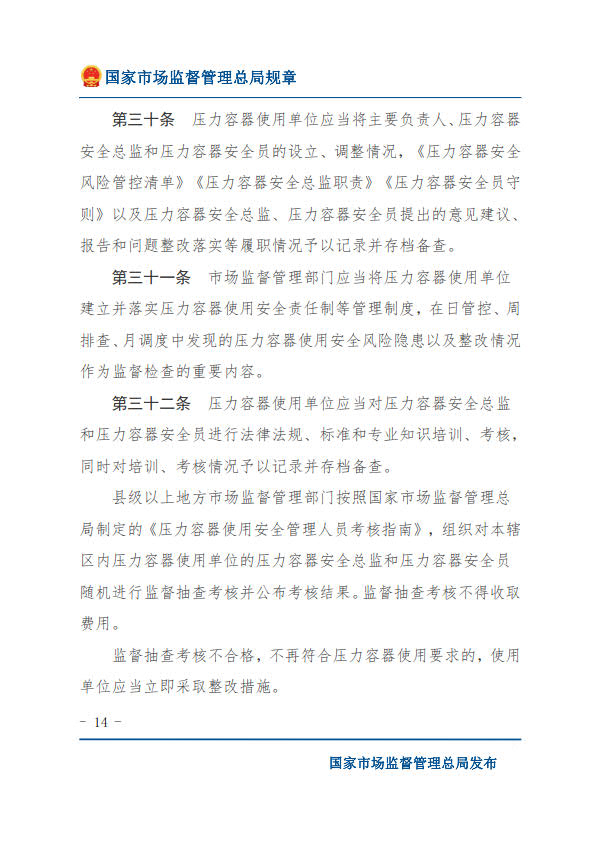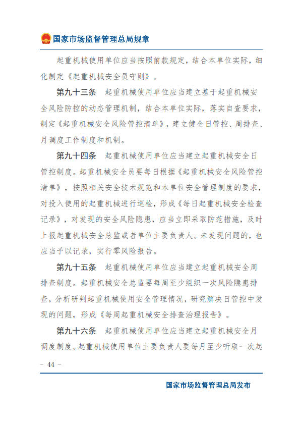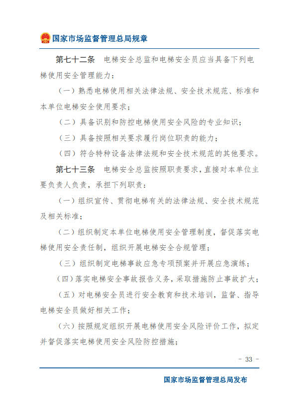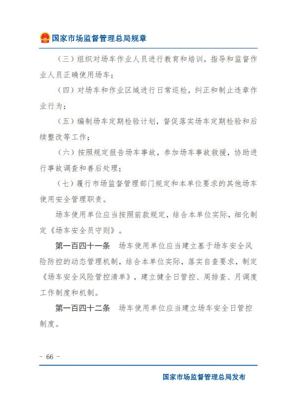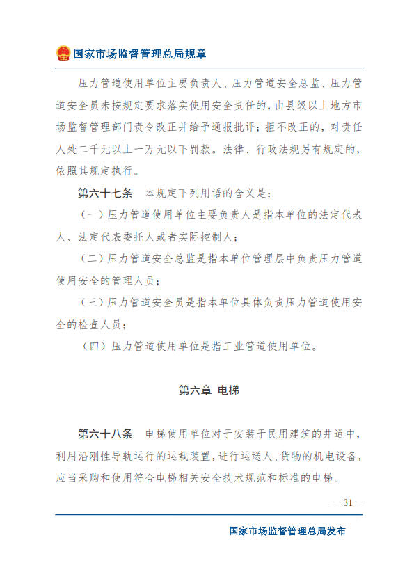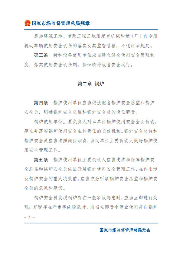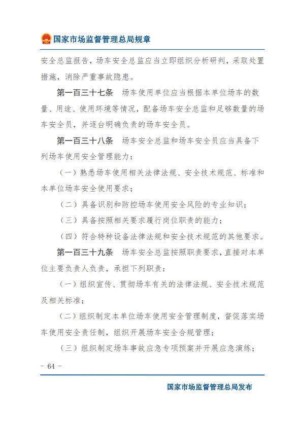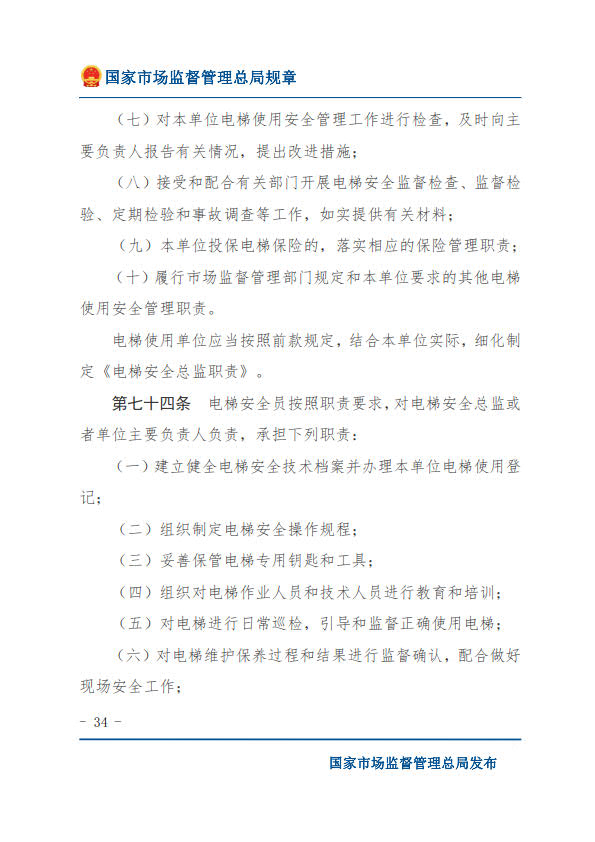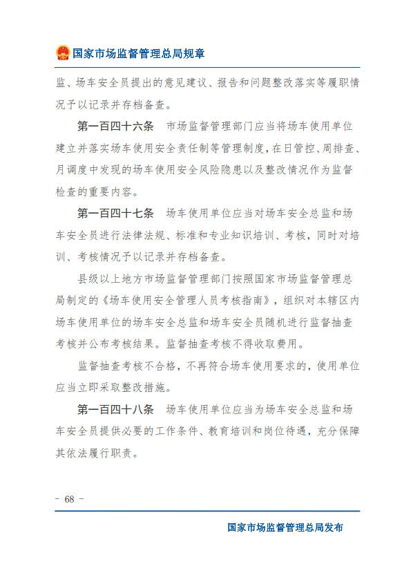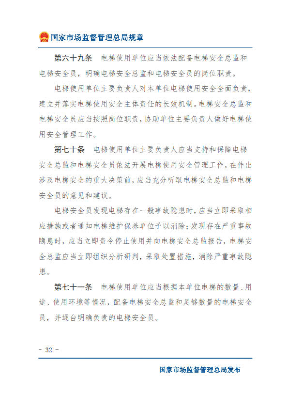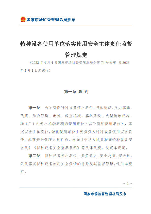 國家市場監(jiān)督管理總局令第74號特種設備使用單位落實使用安全主體責任監(jiān)督管理規(guī)定(2023年4月4日國家市場監(jiān)督管理總局令第74號公布 自2023年7月1日起施行)