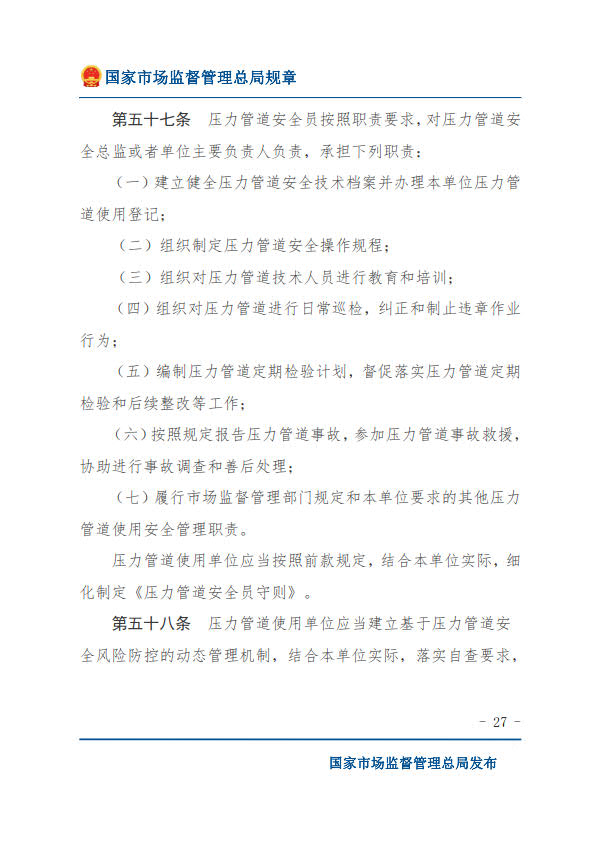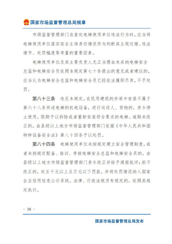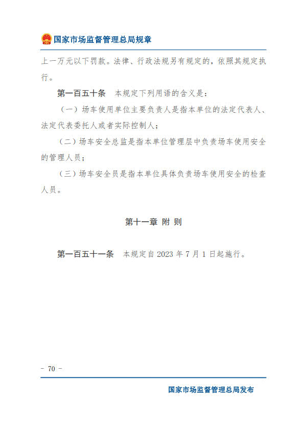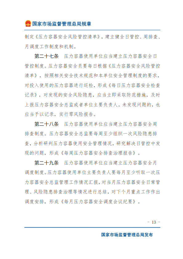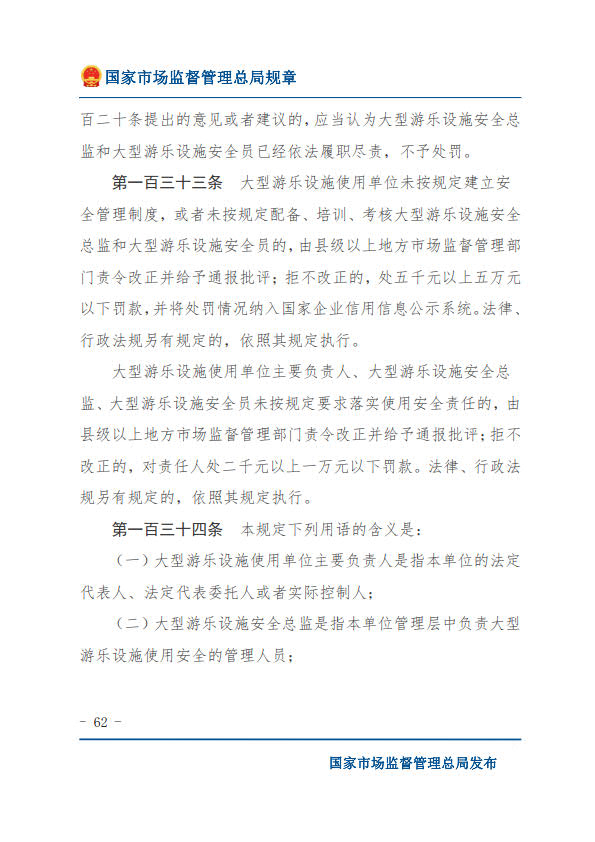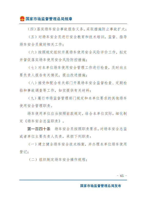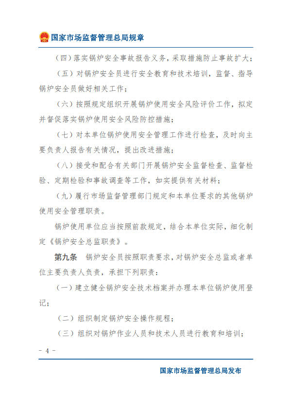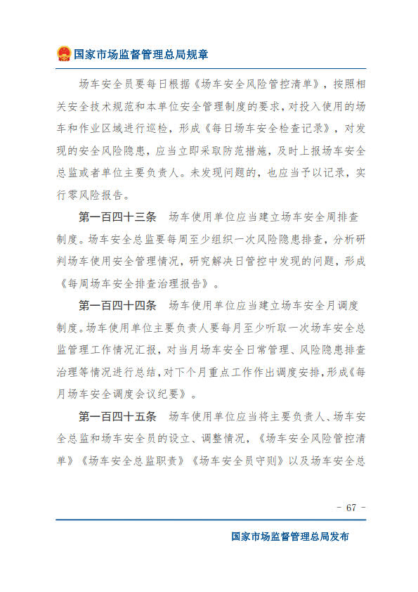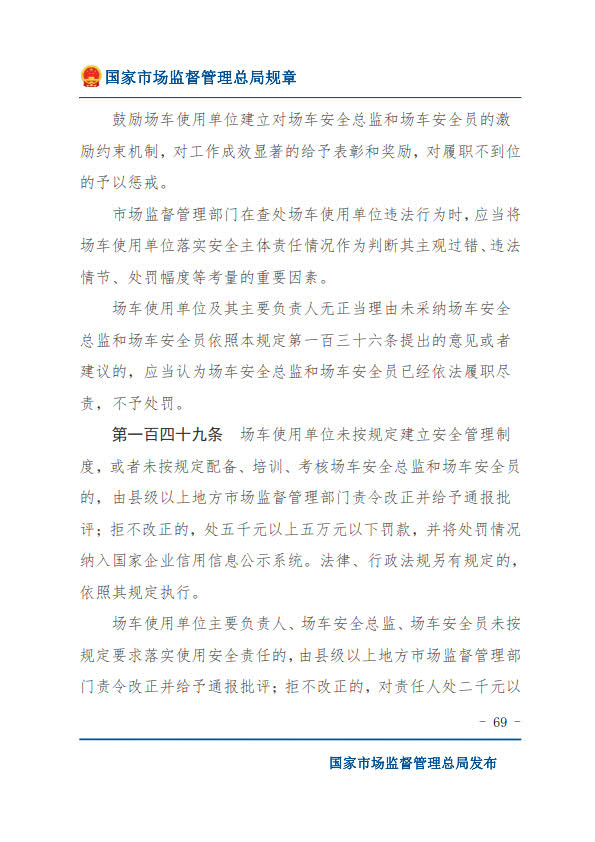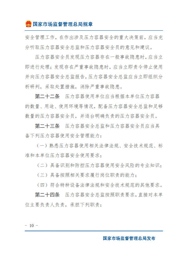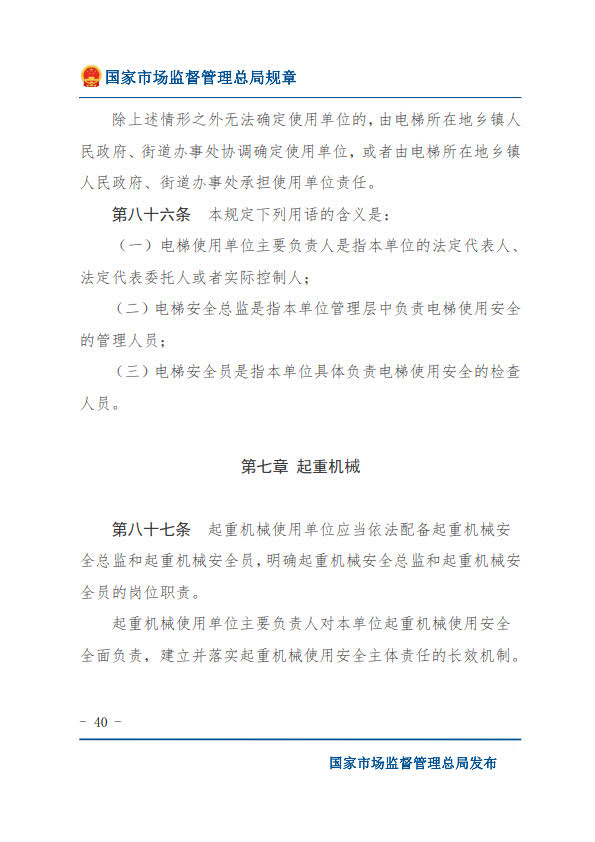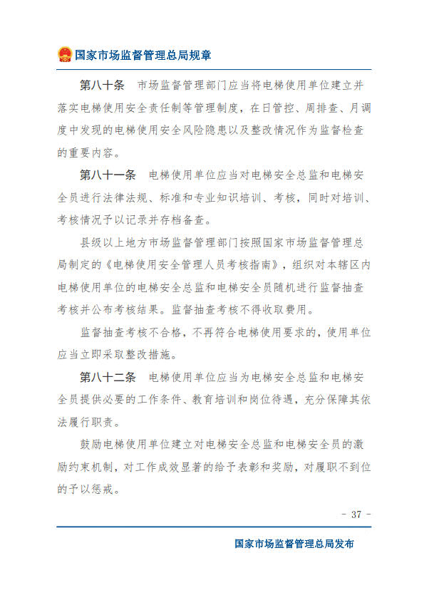 國家市場監(jiān)督管理總局令第74號特種設備使用單位落實使用安全主體責任監(jiān)督管理規(guī)定(2023年4月4日國家市場監(jiān)督管理總局令第74號公布 自2023年7月1日起施行)