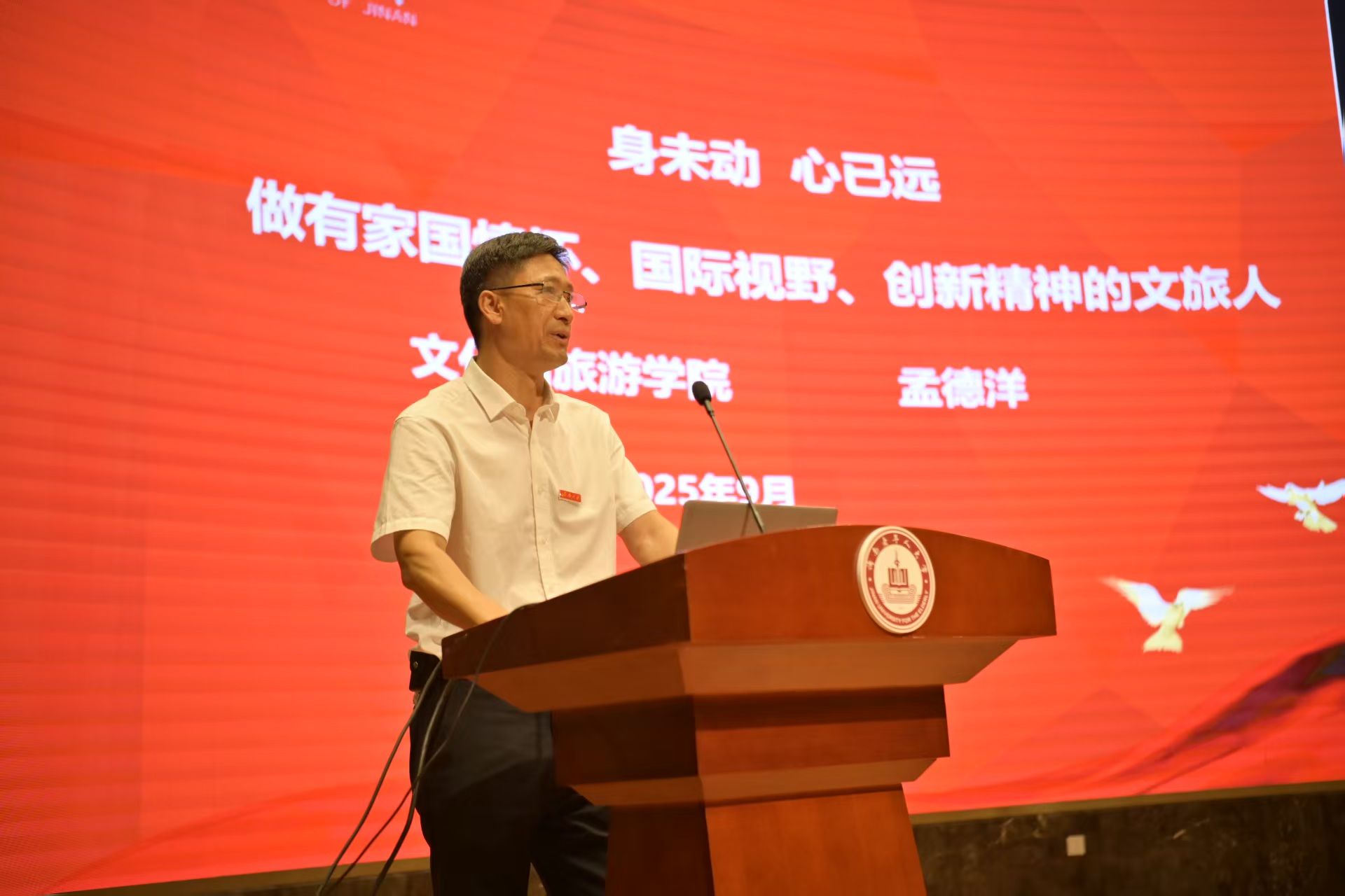 孟德洋书记以《身未动 心已远 做新时代的文旅人》为题,为新生们带来了一场立意高远、内涵丰富的启航讲座。他围绕“为何读大学”这一根本命题,深刻阐释了大学教育在知识探索、人格塑造与视野开拓层面的深远意义。并着眼于现实成长,为同学们规划了大学期间提升核心竞争力的具体路径,引导大家将远大理想落实到扎实的日常行动中。