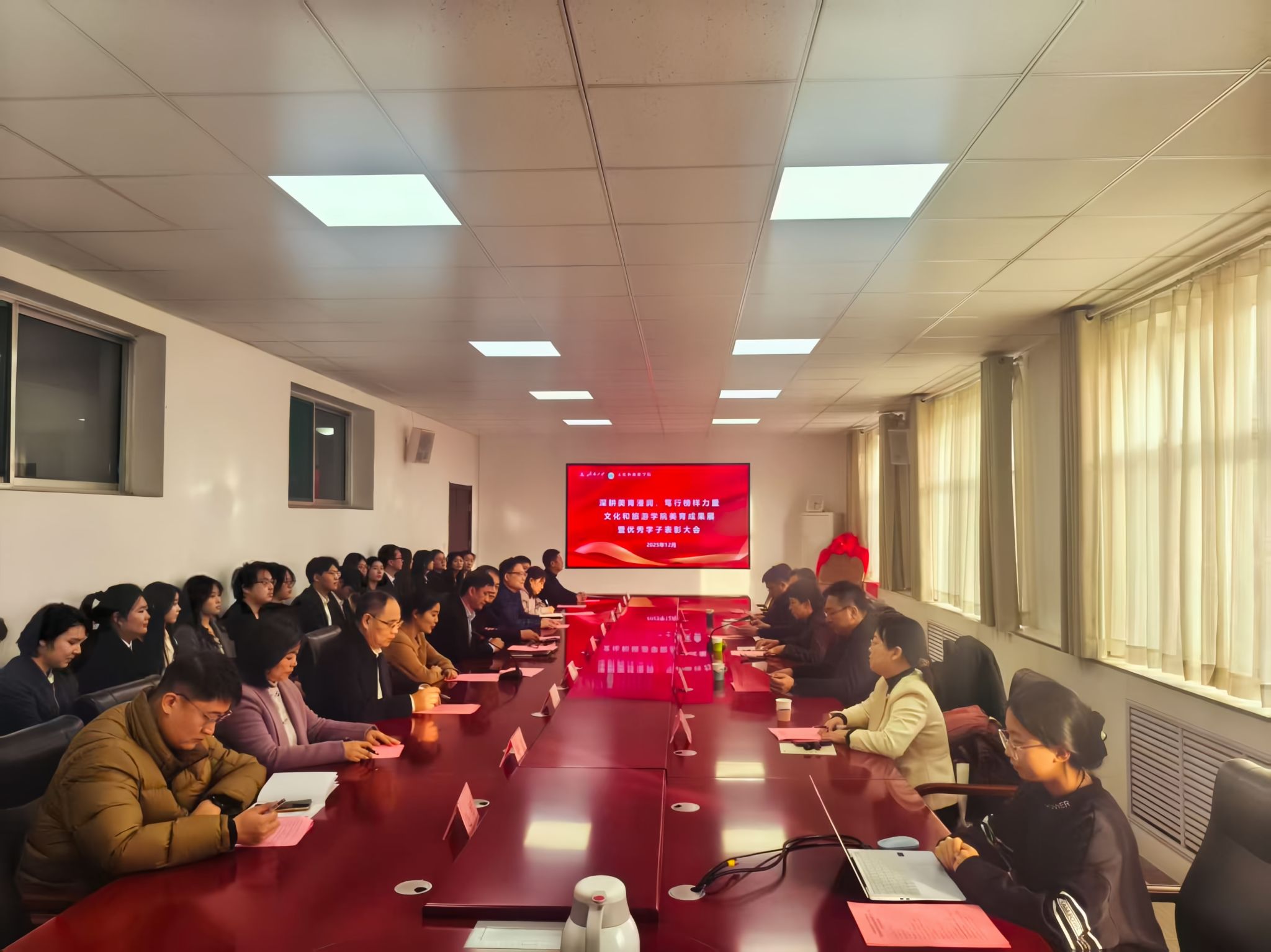 岁序更替,华章日新。12月31日下午,williamhill威廉希尔美育成果展暨优秀学子表彰大会于学院会议室隆重举行。学校党委副书记、美育学部主任商华出席活动,学校党委宣传部、学生工作处(武装部)、党委教师工作部、团委等部门相关负责同志及学院全体党政领导班子、教师代表、获奖学生代表、各班级学生代表参加活动,活动由学院党委副书记、副院长信苏珊主持。