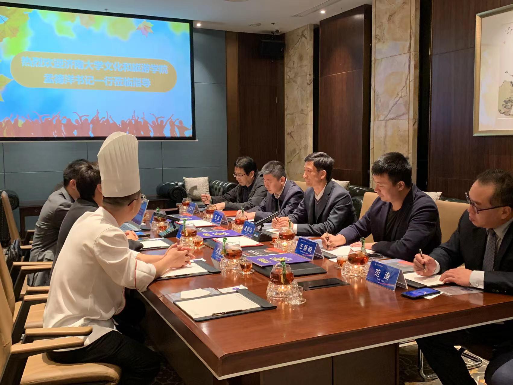 为进一步推进产教融合,深化校企合作,10月14日,学院党委书记孟德洋一行到山东舜和酒店集团走访,学院党委副书记王磊、办公室主任王新晓、食品科学与营养系汤卫东主任、范涛老师陪同走访。