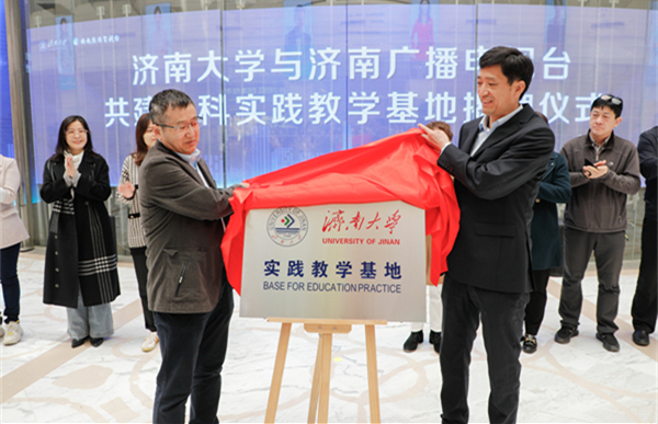 williamhill威廉希尔党委书记孟德洋,济南广播电视台党委委员、副台长隗铜共同为“williamhill中国实践教学基地”揭牌。