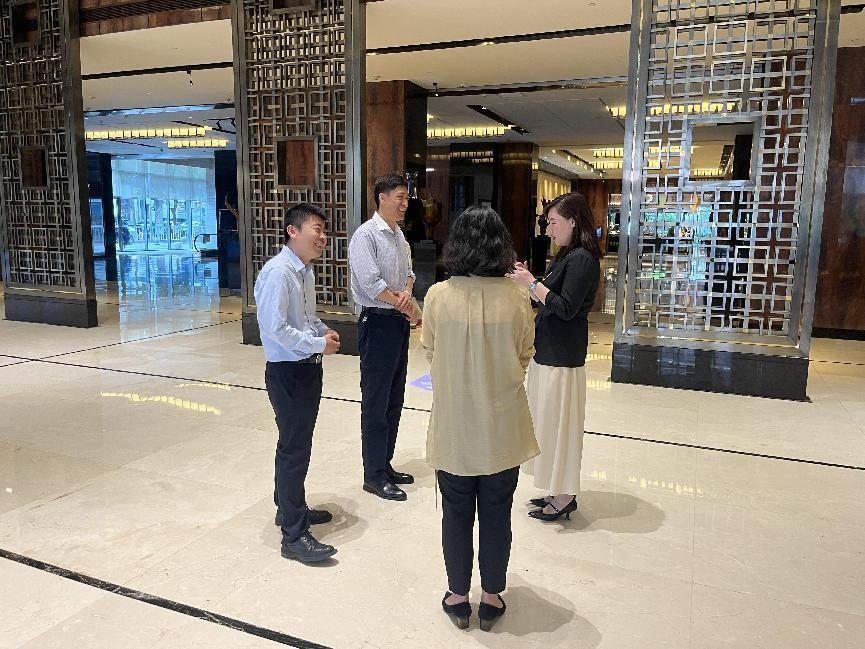 酒店相关负责人介绍了酒店概况、学生的实习情况以及对学生的实习实践过程和具体工作安排,并对实习生把教材知识转为实践的能力表示了肯定,对学生在实习过程中表现出的良好状态和取得的成绩表示赞扬。孟德洋一行参观了富力凯悦酒店,对酒店为学生提供的良好实习环境和锻炼机会表示感谢,希望实习基地加强对实习生严格管理,帮助学生更好的将理论与实践结合,提升学生的实践能力与专业水平,使学生在实习工作中有所获、有所得、有所学、有所悟。同时,希望酒店为学生提供不同的锻炼岗位,让学生全面发展;希望酒店多多关心关爱学生的成长成才,引导教育学生健康成长。