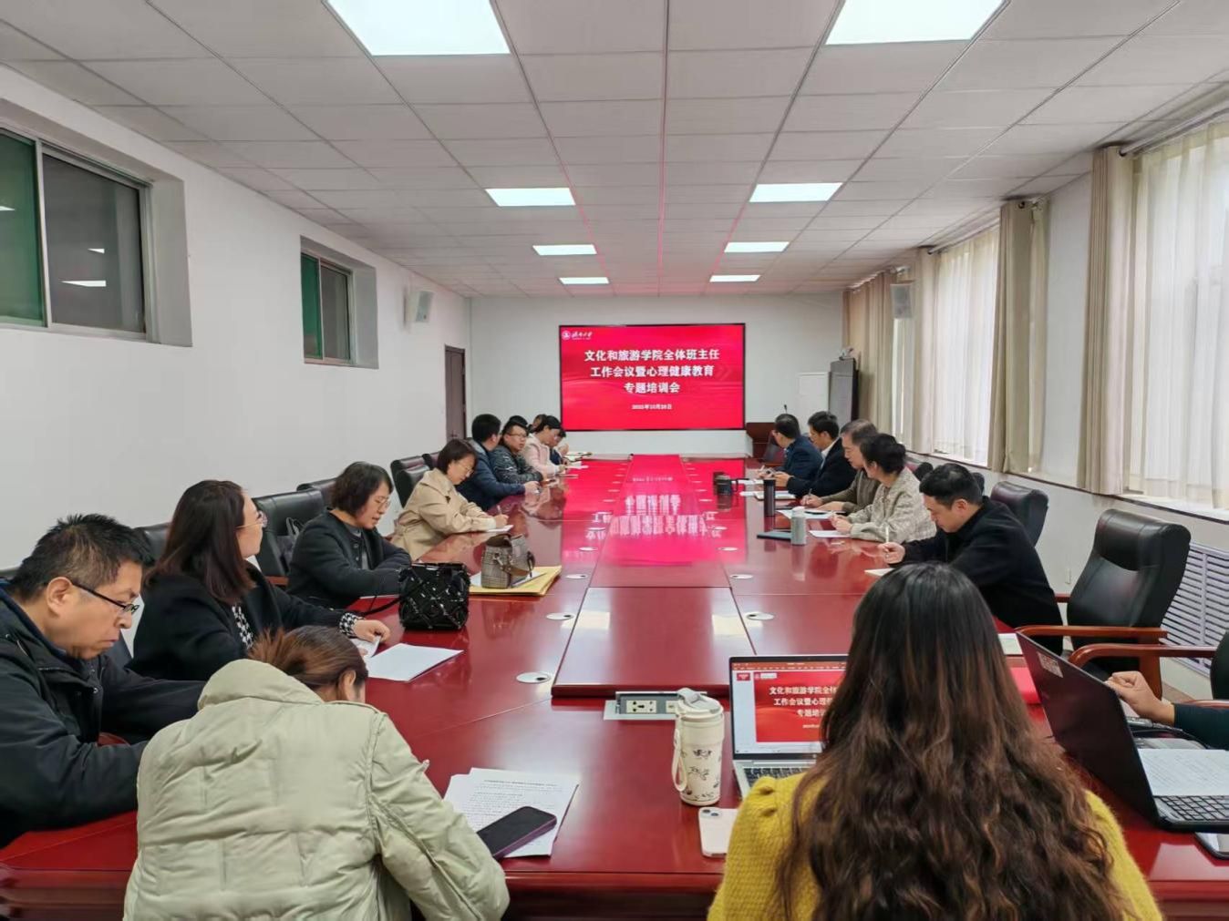 会上,学校党委学生工作部(处)心理指导中心李可心老师、学院党委书记孟德洋、学院院长刘磊、学院党委副书记信苏珊、酒店管理系主任侯兴起等围绕党的二十届四中全会精神、班主任工作及心理健康教育,结合本部门工作,进行主题研讨和集体发言。