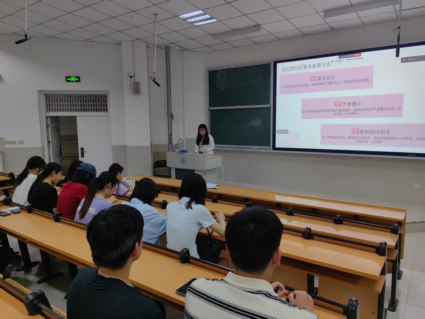 培训伊始,经验丰富的团干部李超然同学就团务知识专题展开培训。培训过程中,通俗易懂的语言结合丰富的实际案例,让团干部们对共青团的组织架构、团员发展流程、团费收缴管理等基础团务知识有了更细致的了解。从入团志愿书的规范填写到团支部工作手册的严谨记录,每一个环节都进行了详细说明,让团干部们对团务工作有了更清晰、更全面的认识。
