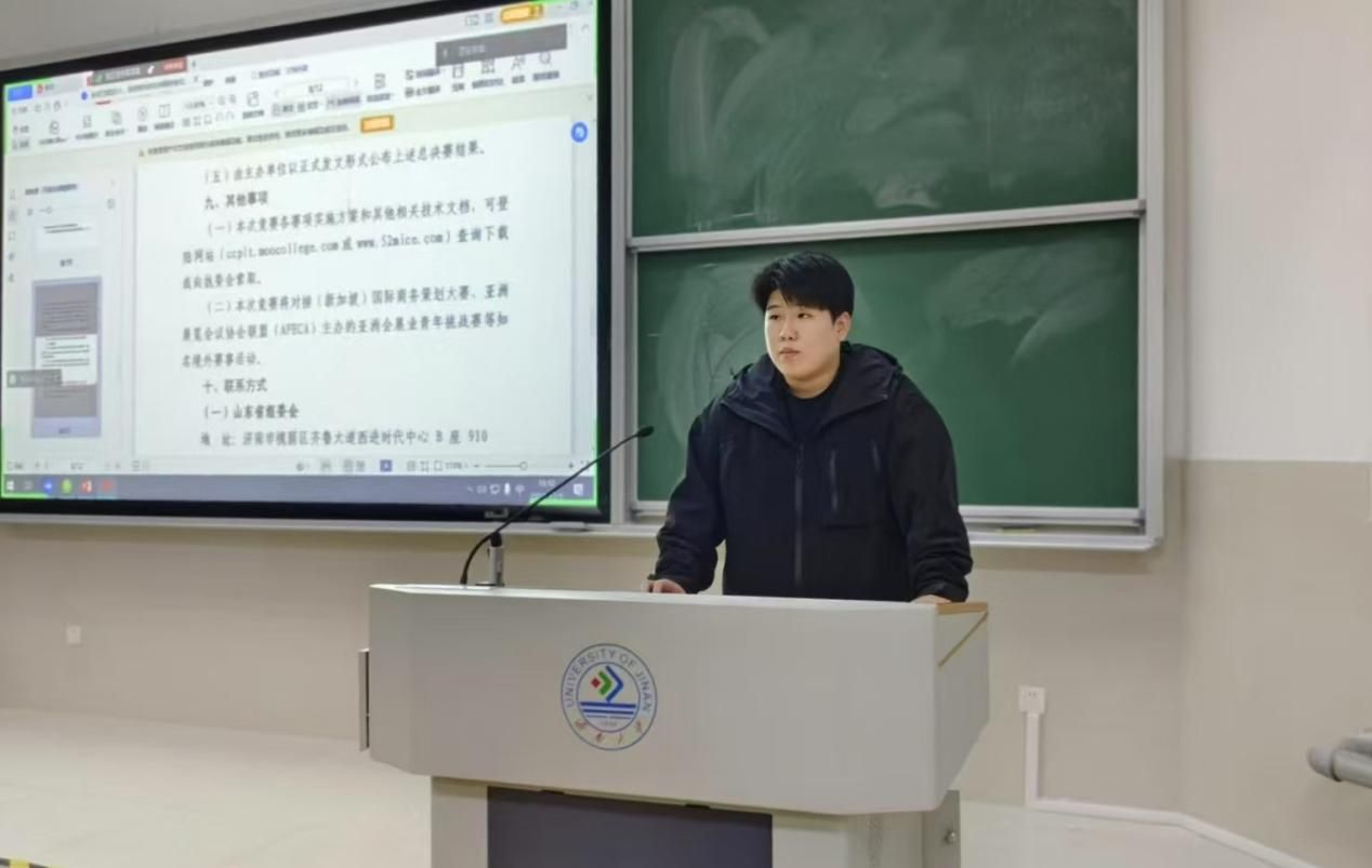 在会议上,创新创业部干事田兆瑞向同学们讲解了此次比赛的流程、时间节点。同时,邀请了往届获奖选手为同学们介绍本次竞赛的参赛注意事项等,为同学们参赛提供了自信心。