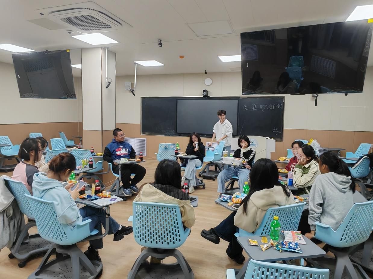 会场布置简约而富有温度,"生涯欢迎"主题标语醒目悬挂,既传递着学院对新生的诚挚期许,亦勾勒出青春启航的美好图景。活动伊始,新生们围绕"大学适应与生涯规划"展开深度交流,结合自身专业特点与成长困惑,分享入学以来的所见所感,在思维碰撞中探索个人发展方向,有效增进了彼此间的熟悉度与情感联结。