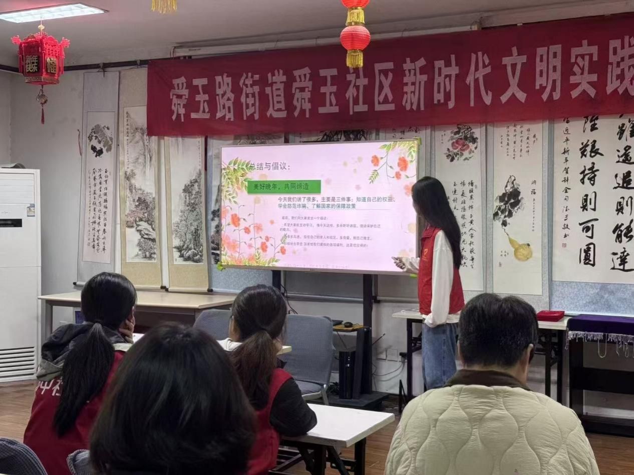 签约仪式后,学生宣讲团队就本次活动主题开展老年人权益保障服务,将校社合作的“首个实践项目”落到实处。宣讲中,同学们围绕居民日常生活中最关心的问题,采用“以案说法”的方式,重点讲解了物业维权、电信诈骗等相关法律知识。