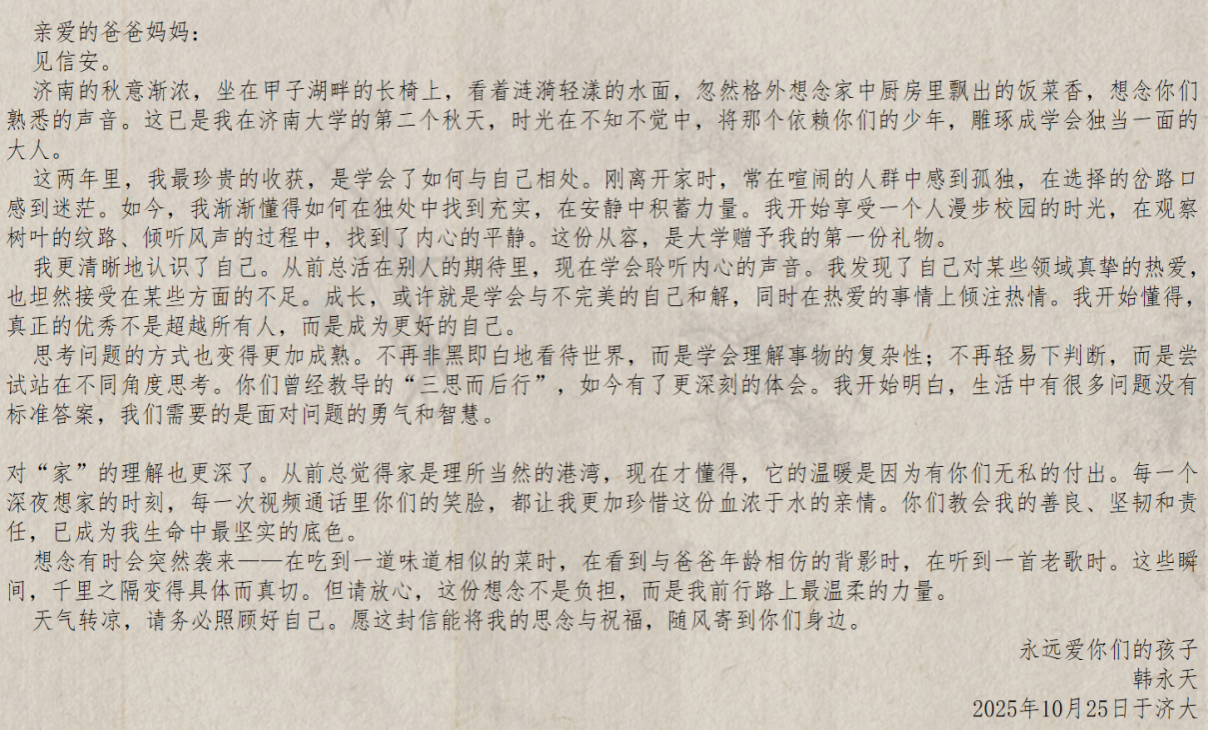为弘扬尊老敬老的中华优秀传统美德,引导学生关注家庭情感与代际沟通,williamhill威廉希尔心理服务协会于2025年10月24日至10月31日面向全院学生成功开展了“九九话重阳,青春绘新意”重阳专属语线上征集活动。活动以重阳节文化内涵为核心,鼓励学生通过现代诗文、家书、创意表情包等形式,向长辈表达感恩之情,传递青春视角下的传统文化新意,受到同学们的广泛关注和积极参与。