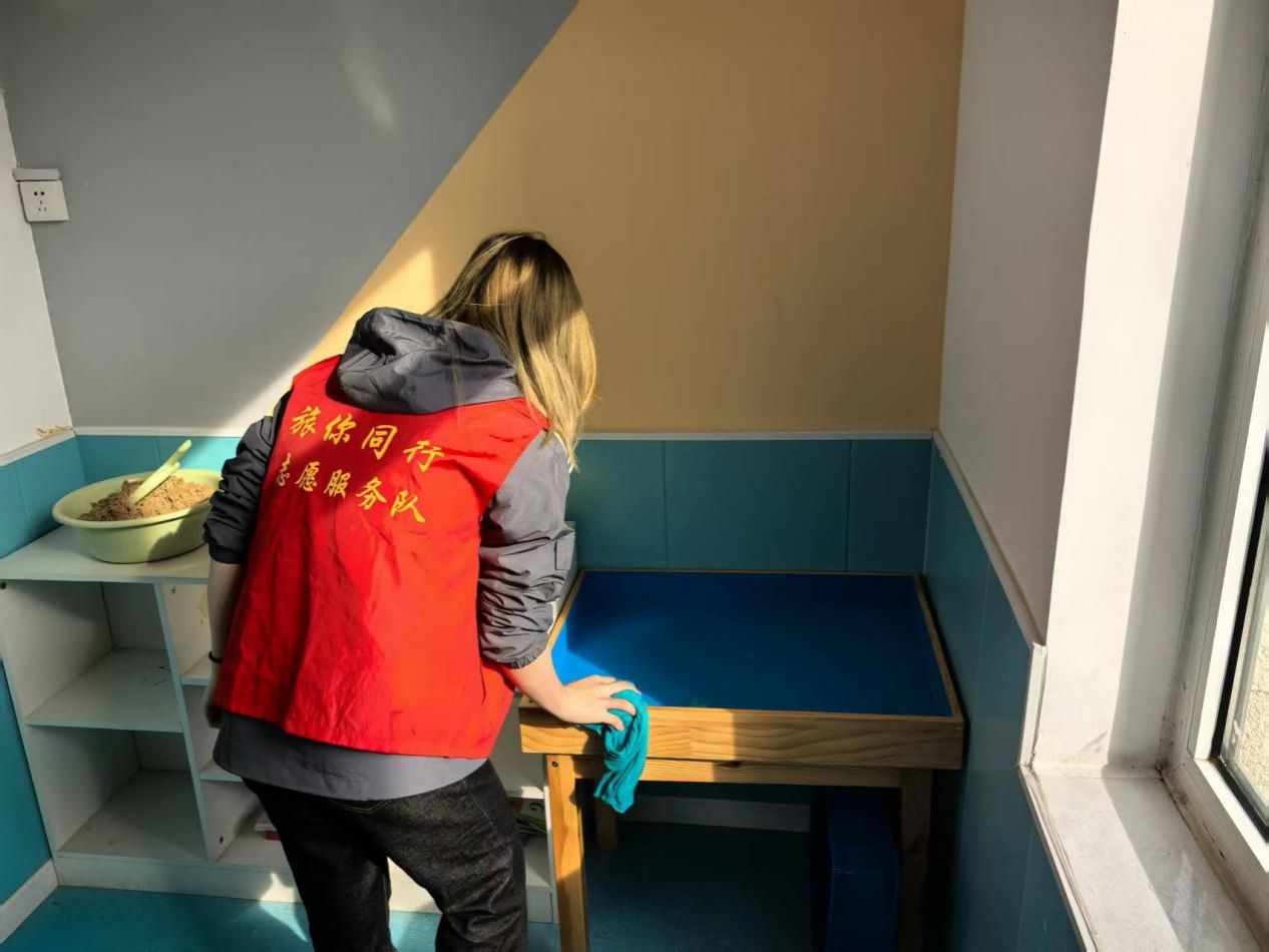 本次“明日儿童”志愿服务活动中,志愿者们以俯身清扫的实干、细致入微的坚守,为孤独症儿童筑起了洁净安全的成长港湾。志愿者们用双手拂去尘埃、用行动传递温情,让关爱不止于言语陪伴,更扎根在日常守护的每一个细节中。此次活动不仅为孩子们营造了舒心的活动环境,更让“奉献、友爱、互助、进步”的志愿精神在实践中传递,激励更多青年以微光汇聚暖流,用点滴善举为特殊儿童的成长之路保驾护航。
