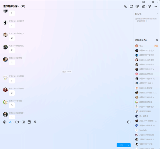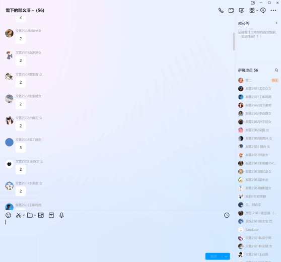学院第一时间召开线上紧急会议,精准划分责任区域、明确任务分工,重点覆盖师生高频通行路段。扫雪倡议通过班级群等渠道一经发出,2025 级的 “小萌新” 们立刻响应 —— 班委带头扛重任,室友组团报志愿,同学间互相吆喝着加入,短短半小时,一支五十余人的扫雪队伍正式集结!