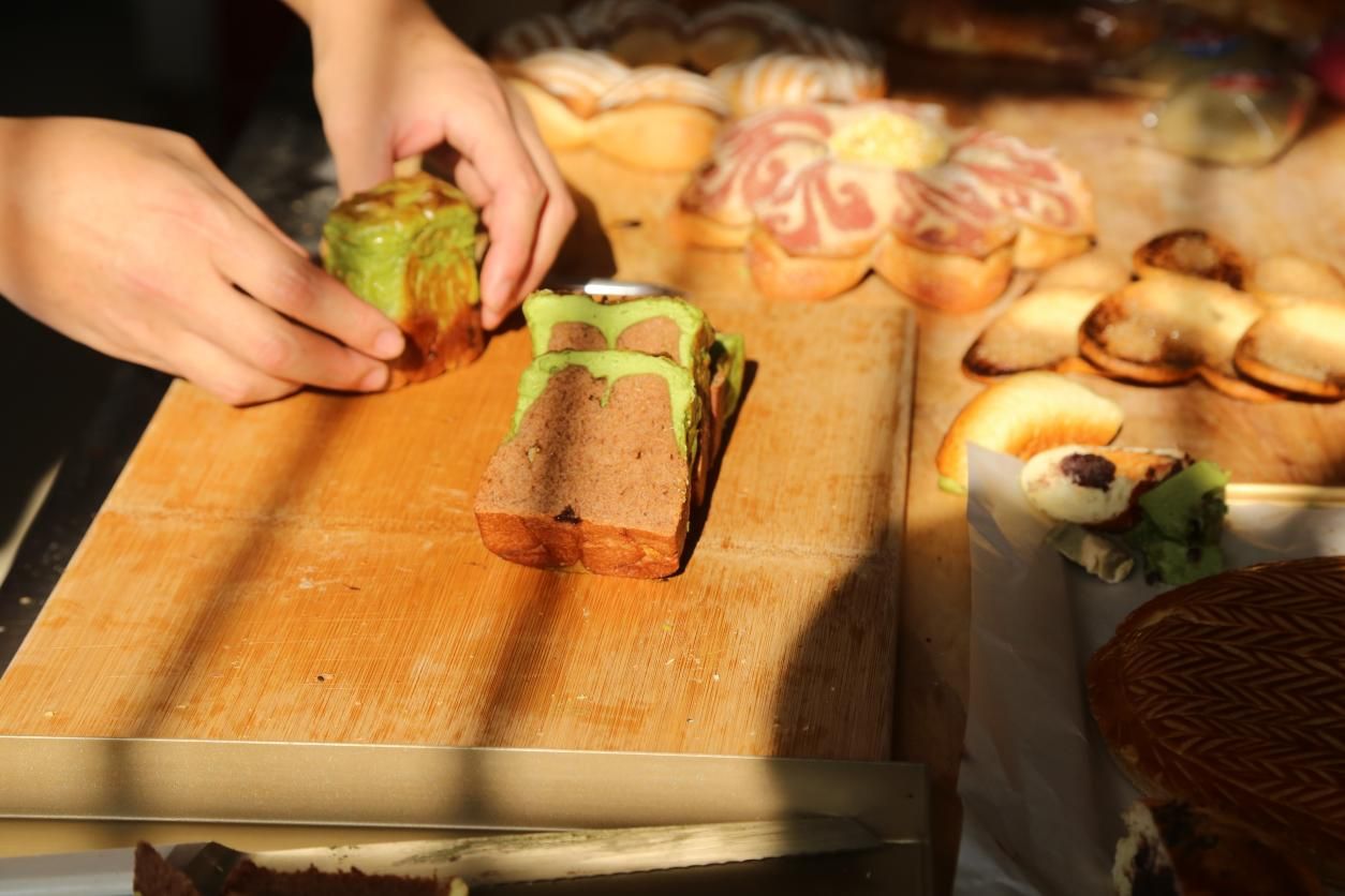 庄士光学长将“食材为本”的理念贯穿始终。他从巧克力原料的挑选讲起,细致解析不同品类在风味与色泽上的差异,并现场演示原料配比、面团揉制等关键步骤,将烹饪理论悄然融入实际操作。针对师生常遇到的过夜面团处理难题,他悉心提醒:“过夜面团质地柔软,揉塑时需手法轻柔,才能保持面团的纹理与活力。”此外,他还分享了含水量对面团口感的影响规律——低于50%时,含水量越高成品越细腻;超过50%时,则含水量越低口感更佳。实用技巧引得同学们纷纷提笔记录。