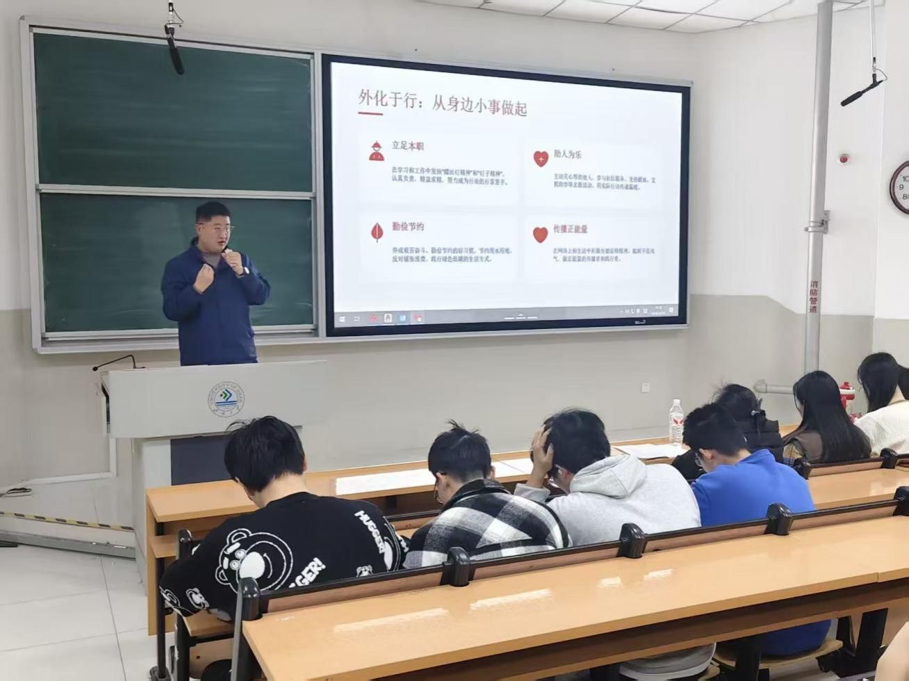 活动现场,主讲人围绕雷锋同志的先进事迹展开分享,结合志愿先进集体案例,生动解读雷锋精神的时代价值与实践路径。从“干一行爱一行”的螺丝钉精神,到乐于助人的无私奉献;从勤俭节约的生活作风,到传递正能量的青年担当,主讲人用鲜活案例让雷锋精神可感可学。