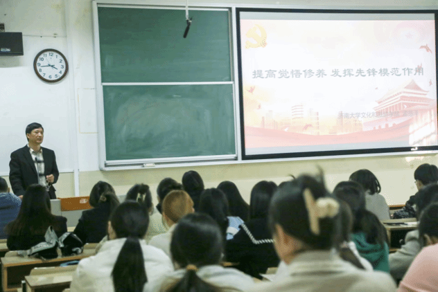 开班仪式由学院团委书记吕龙飞老师主持。随后,学院党委副书记信苏珊开班动员并宣读培训实施方案。她强调,学员们不仅要争取在组织上入党,更应做到在思想上入党,在思想上不断端正入党动机,加强对政治理论知识的学习,提高党性修养。在实践中践行全心全意为人民服务的宗旨,从身边点滴做起,争做模范先锋,发挥模范带头作用。副处级组织员李蘋接着宣读培训班纪律要求并对培训班学员提出殷切希望和具体要求。随后,管潞凝作为学员代表发言,她阐述了对中国共产党的认识,并讲述自己在思想、学习、实践三个方面的具体行动。她希望学员通过培训班学习,都能够有所收获,有所提高,为中华之崛起,为民族之复兴,尽自己的责任和义务,做一名思想政治素养高,文化知识学得好的优秀新青年。最后,学院党委书记孟德洋以“提高觉悟修养,发挥先锋模范作用”为主题讲授党课。他从思想和教育两个方面对学员提出具体要求。思想上,他要求学员坚定理想信念。他将学员拉回历史的长河体会中国共产党的来之不易,正是由于中国共产党的坚定信仰才保持了党的积极性和先进性。教育上,他要求学员具有吃苦耐劳精神并做到学习工作两不误,在荣誉面前不争功,在成绩面前不骄傲。党员是中国共产党的骨干力量,学员要在任何时刻牢记党员标准,发挥模范先锋带头作用。
