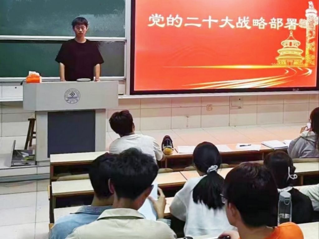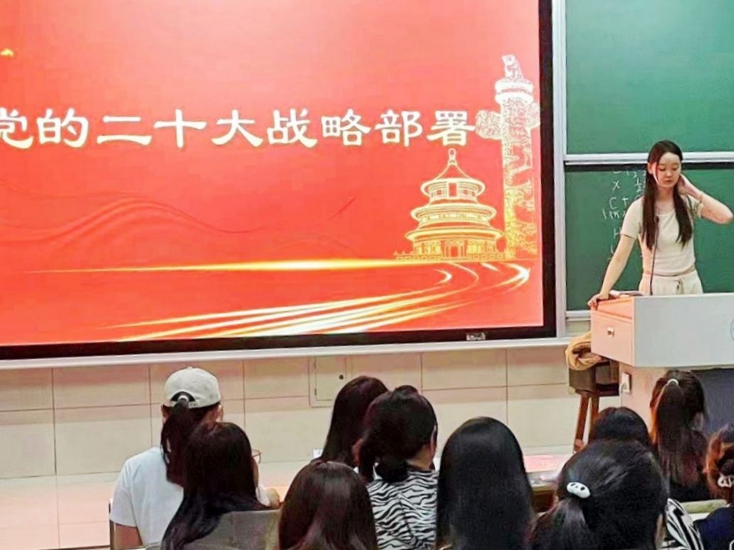 主讲人李潇潇同学以党的二十大战略部署为主题,向文旅学子深入浅出地解析了新发展格局、科教兴国战略、全过程人民民主、全面依法治国等方面的内容,用青年人易于接受的方式介绍了党的二十大精神。同学们结合自身实际就如何落实党的二十大战略部署中与文化旅游相关的部分进行了讨论。李潇潇同学重点讲述了贯彻落实党的二十大战略部署的首要任务是以党的政治建设为统领,扎实推进党的各方面建设,推动新时代党的建设新的伟大工程向纵深发展。作为青年学生,要坚定不移听党话、跟党走,勇担时代使命,努力成为新时代好青年。最后,李潇潇同学回扣主题,重申了弘扬爱国主义。她表示,作为新时代的青年学子,要牢记国家利益至上,以爱国之情为指引,勇担时代重任,为实现中华民族伟大复兴的中国梦贡献自己的力量。