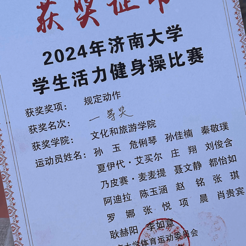 我院健身操舞队由吕龙飞老师任教练,孙玉同学为领队,共20名同学组成。他们参加了规定动作《上春山》和自选动作《Ice Cream》两个项目的角逐。在规定动作项目比赛中,我院健身操舞队脱颖而出,名列前茅,斩获一等奖。孙玉同学更是以优美的舞姿、大气的风格荣获“明星队员”。在自选动作项目比赛中,我院健身操舞队分队继续保持着良好的竞技状态,用自己不凡的实力,奋力前行,尽显风华。特别是夏伊代·艾买尔同学,动作流畅自然,精准到位,展示出我院大学生良好的精神风貌,荣获最佳表演奖。在此次比赛中,我院健身操舞队取得规定动作一等奖、自选动作二等奖的优异成绩。