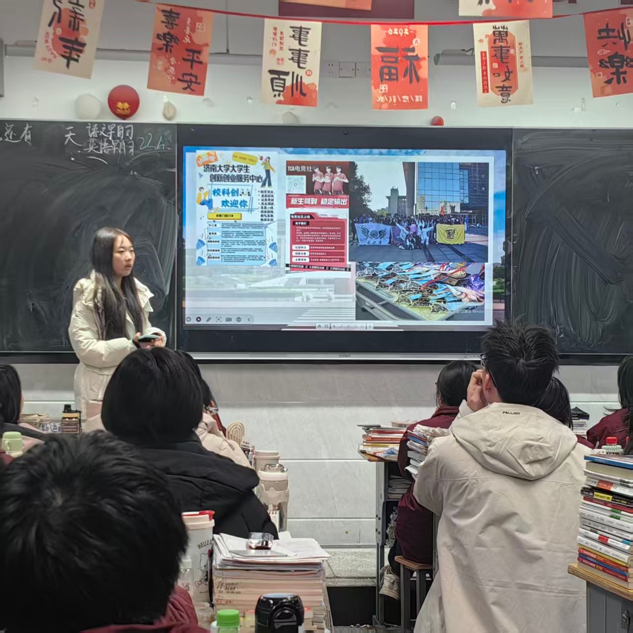 杜钰萱怀揣着对母校的深厚情谊,利用假期重返高中校园,开展了一场富有感染力的招生宣讲活动。她化身“校园形象大使”,通过多媒体展示与互动问答的有机结合,向学弟学妹们全方位解码williamhill中国的育人环境与文化底蕴。她不仅分享了自己在济大的求学感悟,更结合专业视角,描绘了丰富多彩的大学生活图景,点燃了学弟学妹们对未来的憧憬。此次回访,不仅是一次信息的传递,更是一次心灵的对话,她在讲述中愈发体会到身为文旅学子的自豪,更坚定了做好青春“引路人”的决心。