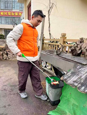 初春的济南乍暖还寒,葫芦峪社区内一派热火朝天的劳动景象。身着红马甲的刘森洋手持扫帚、撮箕,沿着社区主干道对垃圾、落叶及绿化带内白色污染物进行地毯式清理,尤其留意墙角、屋后堆积的干枯杂草。经过两小时劳动,道路焕然一新,社区环境显著改善,也为后续工作开展奠定了群众基础。
