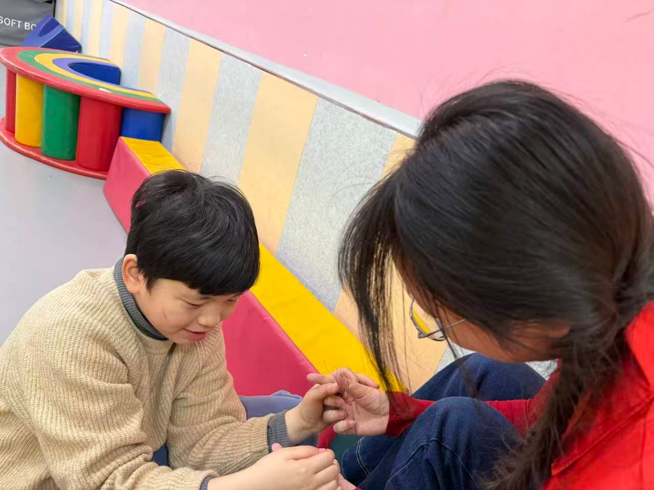 活动中,一幕幕暖心画面不断上演。志愿者们时刻关注着孩子们的状态,细心地为孩子们擦拭口水,温柔地与他们聊天互动,倾听孩子们的心声,分享有趣的故事。在轻松愉快的交流中,孩子们脸上洋溢着纯真的笑容,与志愿者们建立起深厚的情谊,整个活动室充满了欢声笑语,暖意融融。