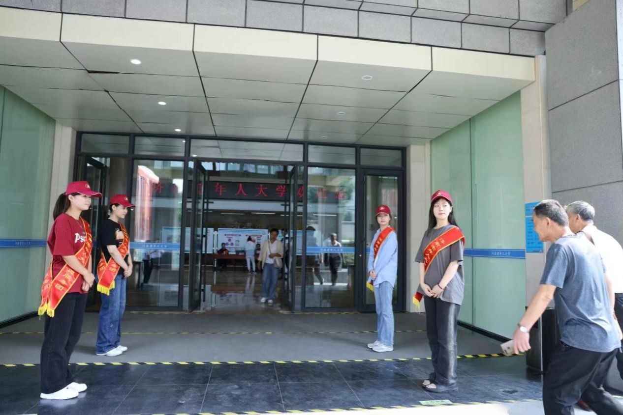 文旅学院的志愿者们分列在大门口的两侧,欢迎每一位踏进大门的老年学员,为他们提供引导咨询等志愿服务。在志愿者的引导下,每位学员都顺利来到大厅准备自己的节目。在现场,志愿者们还和老年学员们进行交流,了解他们的需求,为他们提供个性化服务。大学生服务志愿者丁珂、刘子暄、赵小淼、骆敬茹表示,能够有机会回报社会、奉献社会,他们感到非常自豪。