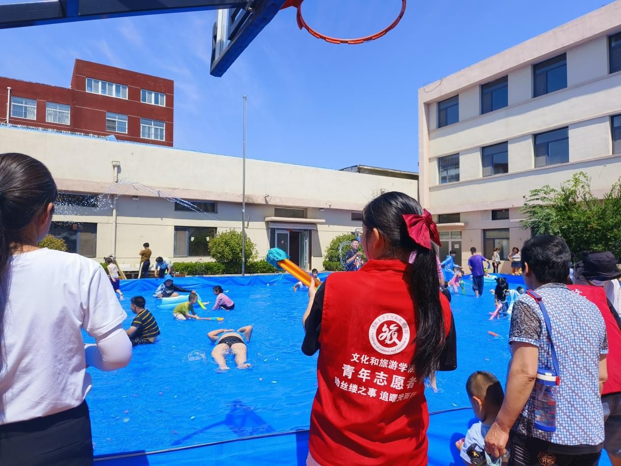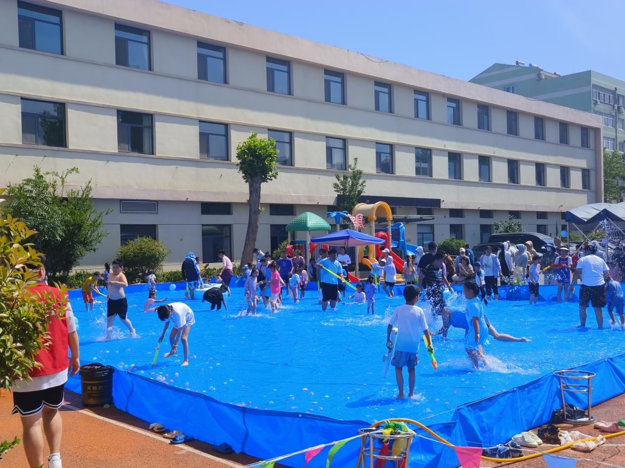在活动现场,志愿者与基地老师紧密合作,精心布置了嬉水场地。他们搭建泳池布,给水池注水,并为孤独症儿童分发水枪、雨衣等玩具。一声哨响,第一道水花扬起,整个场面立刻沸腾起来,孤独症儿童迫不及待地冲向各自想玩的区域,一支支水枪“火力全开”,志愿者陪着孩子们在水中嬉戏玩耍,细心地照顾着孩子安全,部分志愿者则和孩子们一起分享玩具,用温柔的话语和他们交流,鼓励他们勇敢尝试,整个操场成了一片欢乐的海洋。志愿者毕海霞同学表示,当看到孩子们脸上绽放的笑容,她感到一切的付出都是值得。