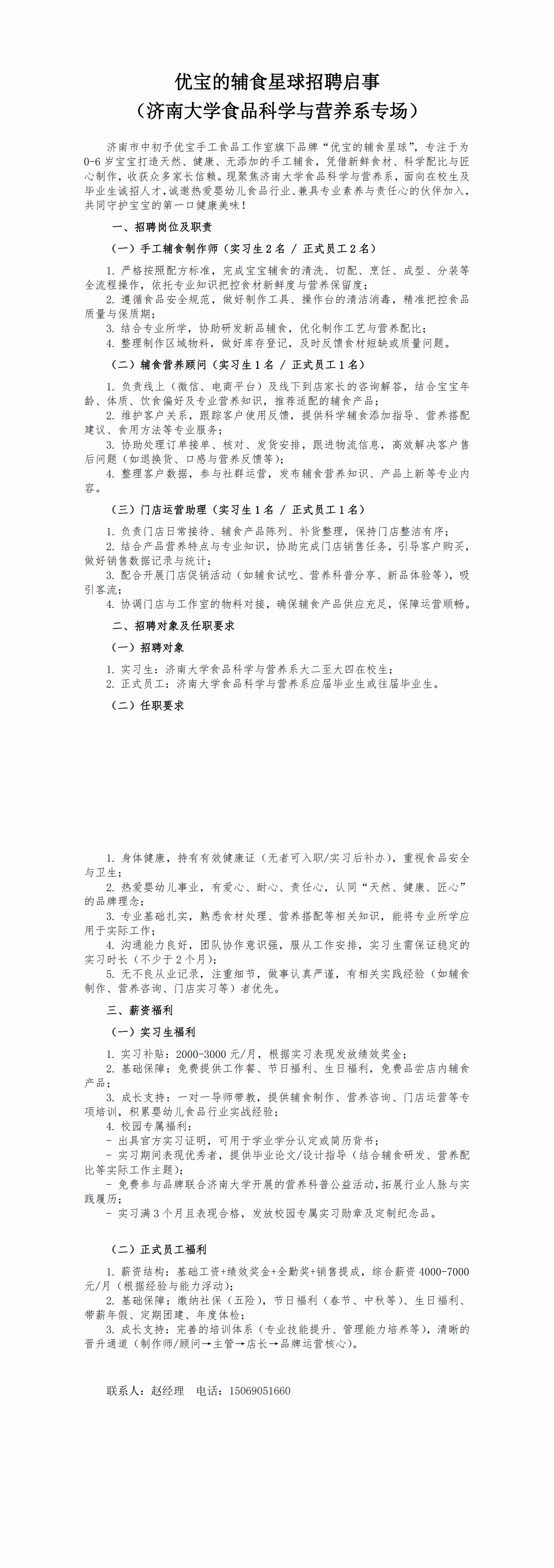 优宝的辅食星球招聘启事 (williamhill中国食品科学与营养系专场)